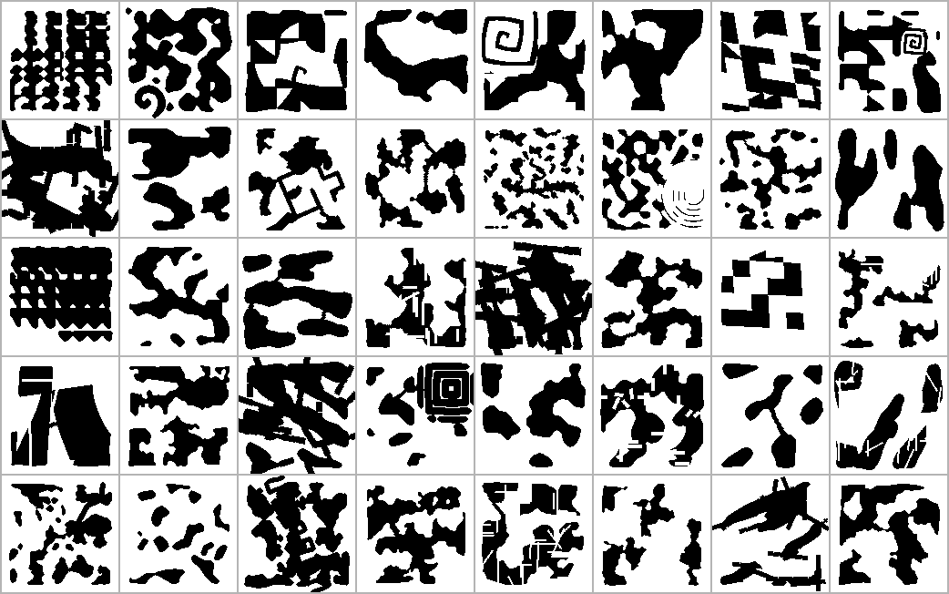 But a dataset can't just be big—it has to be diverse if we want to encourage generalization. A model trained only on structures that look like real designs will learn the statistics of those designs without necessarily learning the physics that makes them work. So alongside the expert templates and their procedural variants, we include a large collection of random designs: geometries with no design intent behind them, sampled broadly through organic procedural generation across the space of possible geometric and material configurations. These designs force the model to confront electromagnetic behavior in regions of the design space that no expert would visit, building a broader physical understanding from which the expert-seeded knowledge can generalize.